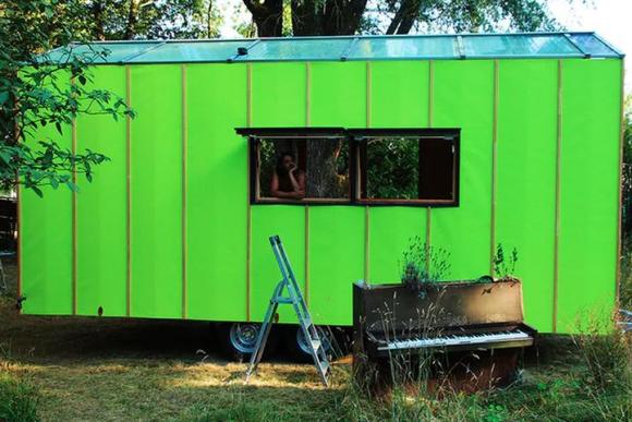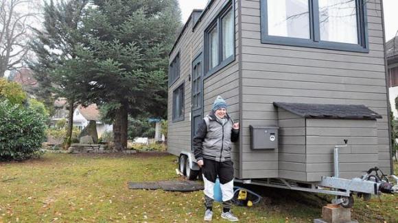 Florentina Gojani und Alesch Wenger leben seit 2018 Vollzeit in einem unter 3,5 Tonnen schweren Tiny House. Mit diesem Gewicht können sie das Haus auf Rädern als Spezialfahrzeug im normalen Strassenverkehr bewegen, was den beiden wichtig ist. Im Moment steht das autarke Haus in der Stadt Zürich. Sie planen, eine Bewilligung als "normales Haus" einzuholen, um regulär darin wohnen zu können. Investiert haben sie in den Bau schätzungsweise 150'000 Franken.